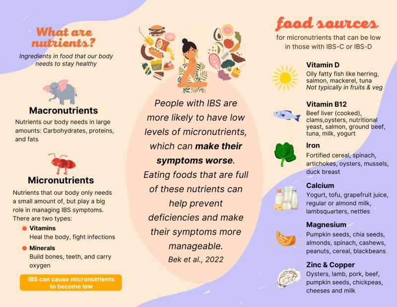 IBS is a struggle for the body where many nutrients are expelled (pooped out) before the body can use them. This informational flyer helps to understand what nutrients are lost and why.